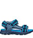 Open-toe boys' sandal with outdoor DNA, flexible, lightweight and water-resistant. Its fully adjustable, quick-drying upper combines navy blue and light blue, while its special outsole guarantees effective grip even on slippery terrain. Made from mesh and waxed leather-effect material, Airadyum is the ideal companion for summer games and outdoor activities.