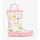 Help them step into springtime with these! Featuring an all-over pastel floral print sprinkled with sweet chicks and fluttering butterflies, these boots bring storybook charm to every splash. Set against a glossy light cream base, they’re finished with soft pink trim, easy pull-on handles, and sturdy soles for extra grip. Handcrafted from premium rubber, they’re as durable as they are delightful—perfect for little explorers on rainy-day adventures.